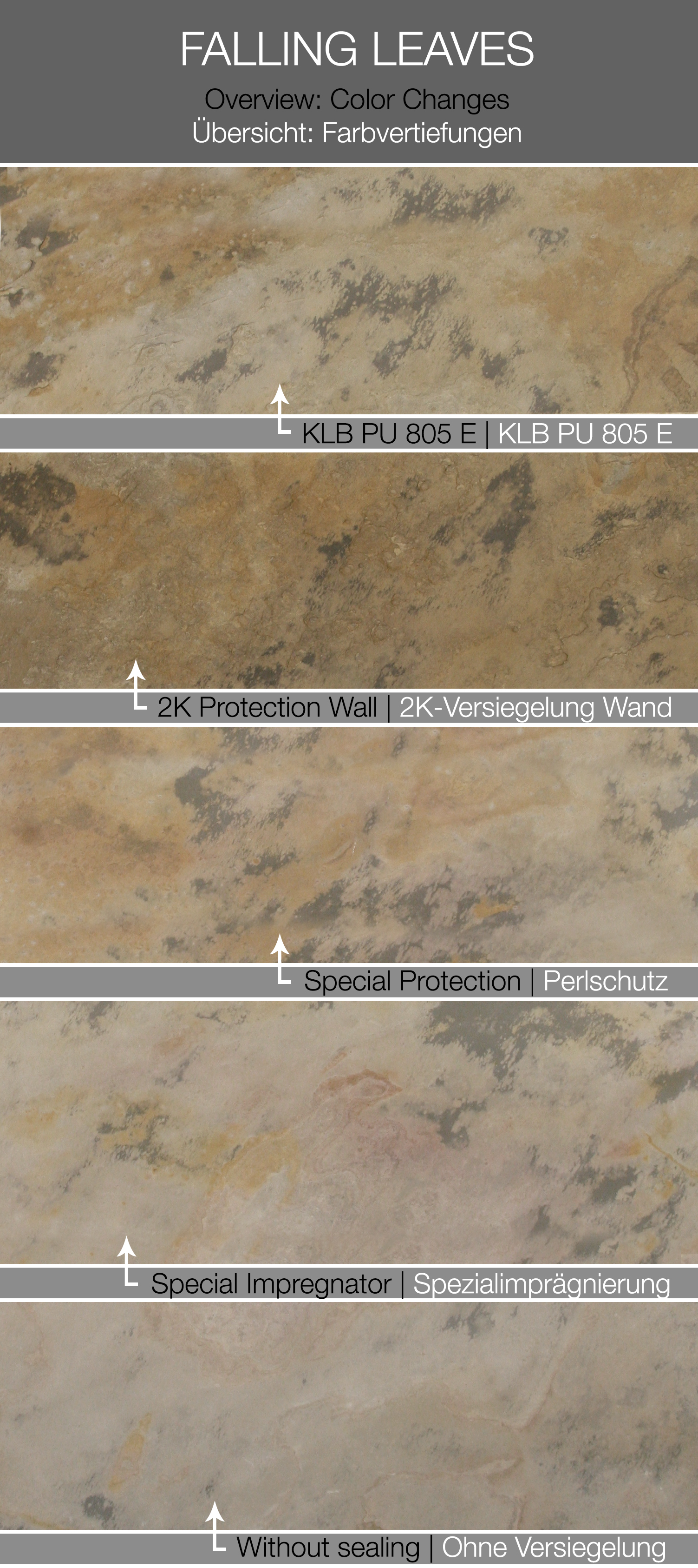 Falling Leaves ist ein Buntschieferdekor mit einer echten Steinoberfläche Der Buntschiefer zeichnet sich durch matte Farben, aber oft sehr stark durchwachsene Verläufe mit blumigen Mustern aus.