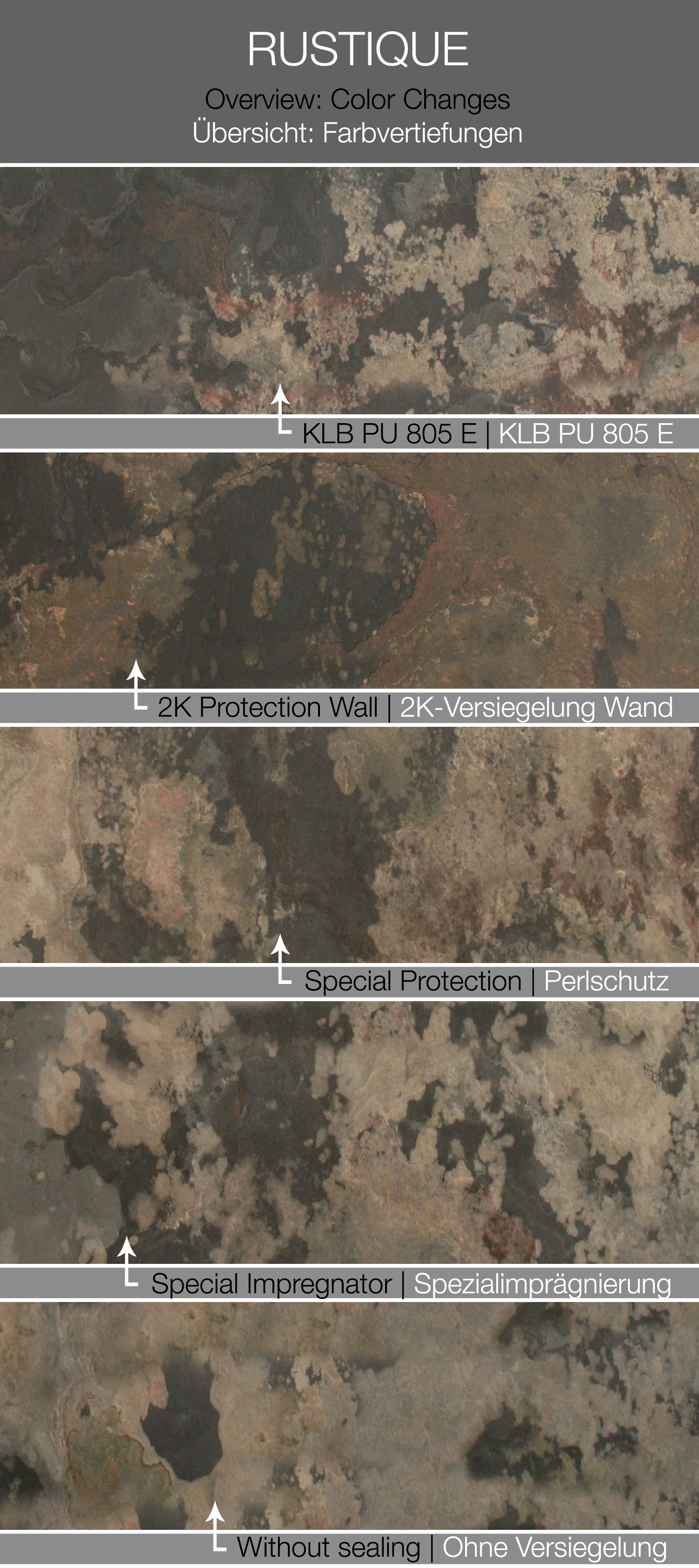 Rustique ist ein Buntschieferdekor mit einer echten Steinoberfläche Der Buntschiefer zeichnet sich durch matte Farben, aber oft sehr stark durchwachsene Verläufe mit blumigen Mustern aus.